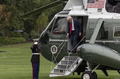 米大統領専用ヘリ、マリーンワンから降りるトランプ大統領=9月、ホワイトハウス南庭(ゲッティ=共同)(KYODONEWS)