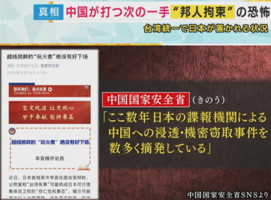 >さらに峯村氏は、「19日、邦人拘束などを扱う中国の国家安全省が声明を出した」と警告する。