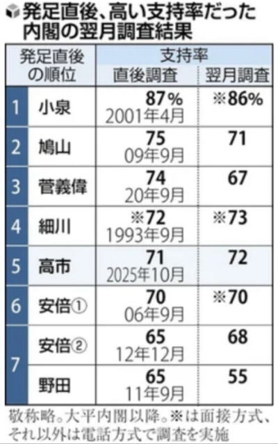 <参考=「高市内閣の支持率72%、小泉・第2次安倍内閣などと並び高い水準維持…読売世論調査」(読売新聞)>