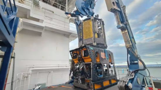 探査船に搭載された来年1月のレアアース試掘で実際に使用する無人探査機(SIP/JAMSTEC提供)