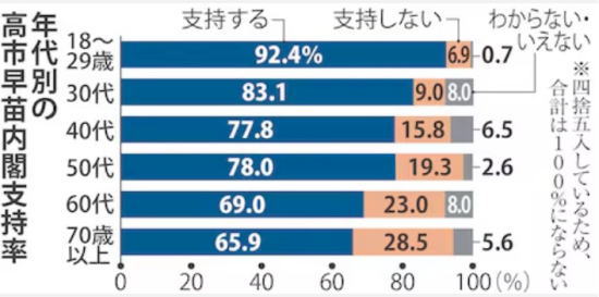 <参考=「高市内閣、18~29歳の支持率92% 若者世代で圧倒人気…全世代65%超 政策も好感」(産経新聞)>