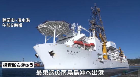 >探査船「ちきゅう」は、きょう(12日)午前9時すぎ、静岡市の清水港を出航し、東京からおよそ2000キロ離れている南鳥島に向かいました。
