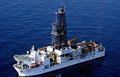 レアアース泥の試験採掘を担う地球深部探査船「ちきゅう」(海洋研究開発機構提供)