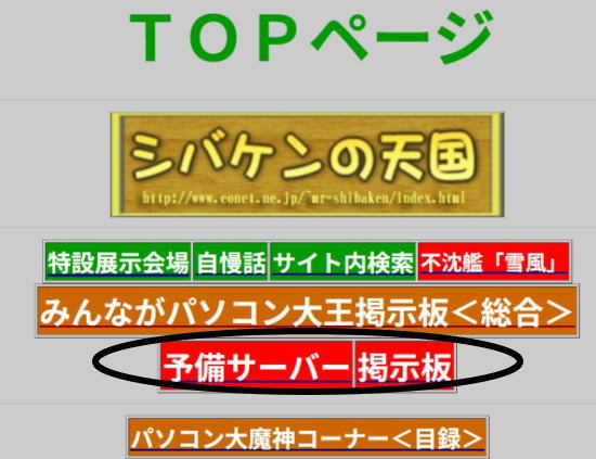 その場合の、抜け道<?>として、画像の如く、<予備サーバー>と、<掲示板>の、リンクを追加しました。
