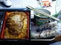 カツ丼、焼ちくわ3本、カップどっさりほうれん草味噌汁。