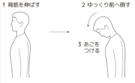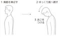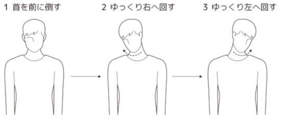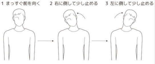 首を舞えに倒す ゆっくり右へ回す ゆっくり左に回す