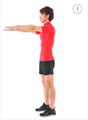 手順1:胸を張り、背すじを伸ばし、両腕を胸の前に伸ばしましょう。この時に、腹筋には力を入れておきます。